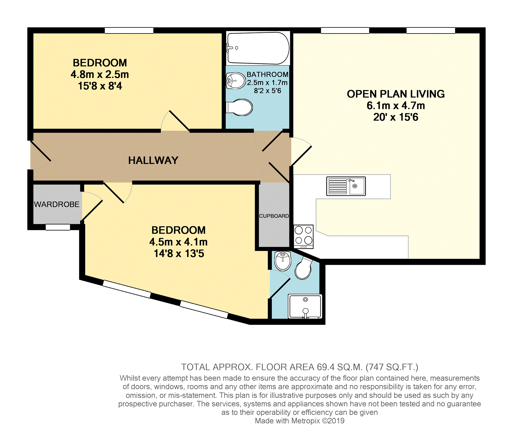 In brief the well proportioned accommodation comprises; entrance hallway with access to open plan lounge / fitted kitchen and dining room, two generous bedroom, one with en-suite shower room and walk in wardrobe and contemporary bathroom.