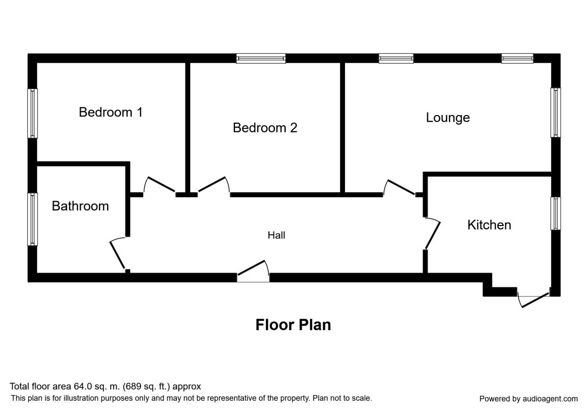 Doors to Lounge, Kitchen, both Bedrooms and Bathroom.