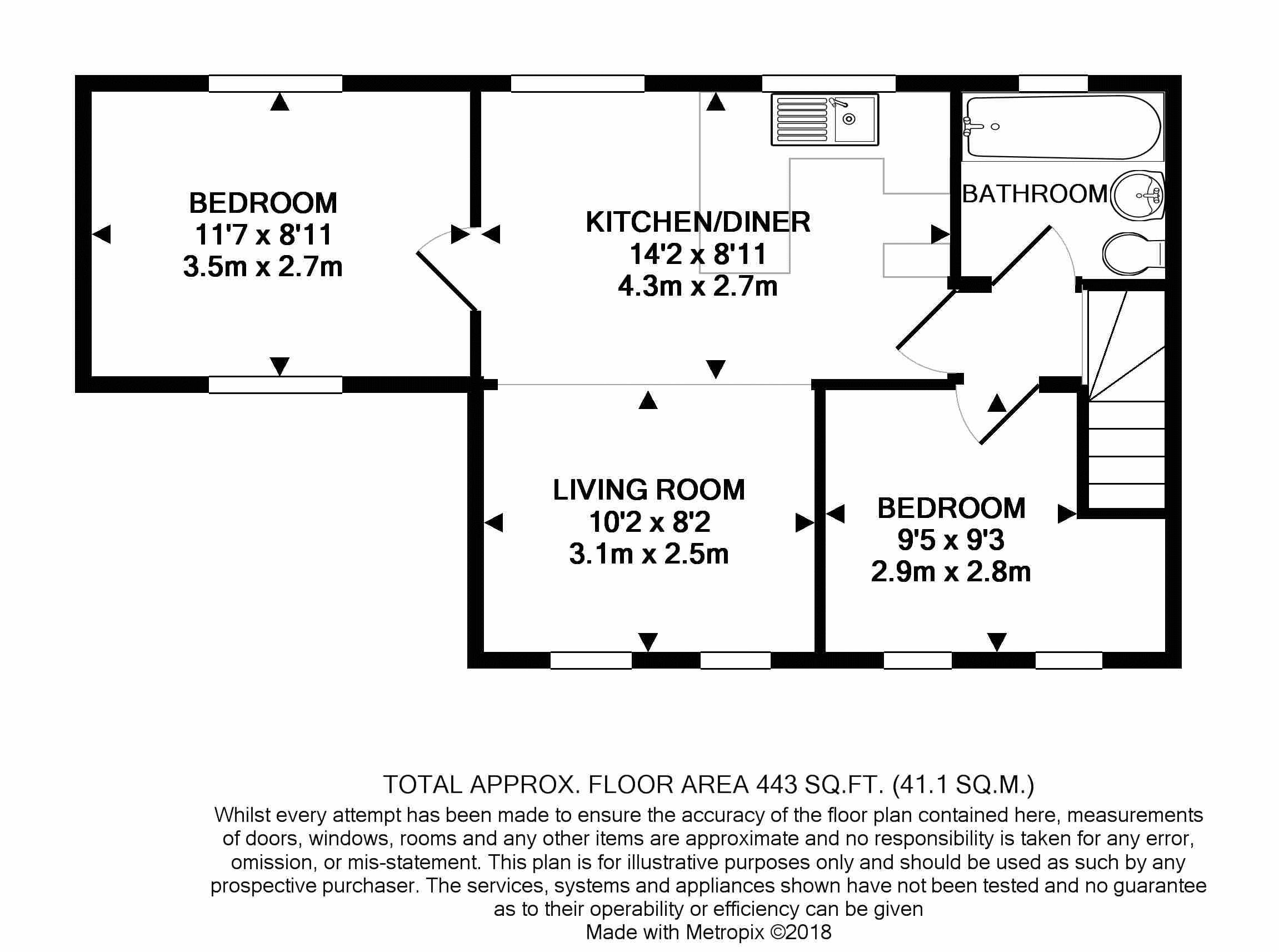 Is a deceptiveley spacious two bedroom apartment with the benefit of having a current tenant paying £495 pcm. The property has it own private ground floor entrance hall with staircase ascending to the first floor landing which has a loft hatch access point and access to the kitchen/dining/living room, bedroom and bathroom. Off the dining area there is a door leading to the second bedroom. The kitchen area has laminate flooring, a range of base and wall units, breakfast bar, space for cooker, space for washing machine and additional appliance. The dining/living areas also have laminate flooring. The second bedroom also has laminate flooring and has windows to both elevations creating a light and airy room. The bedroom off the landing has an airing cupboard housing the property’s central heating boiler. The bathroom/wc has a suite comprising panelled bath, pedestal wash hand basin and low level wc.