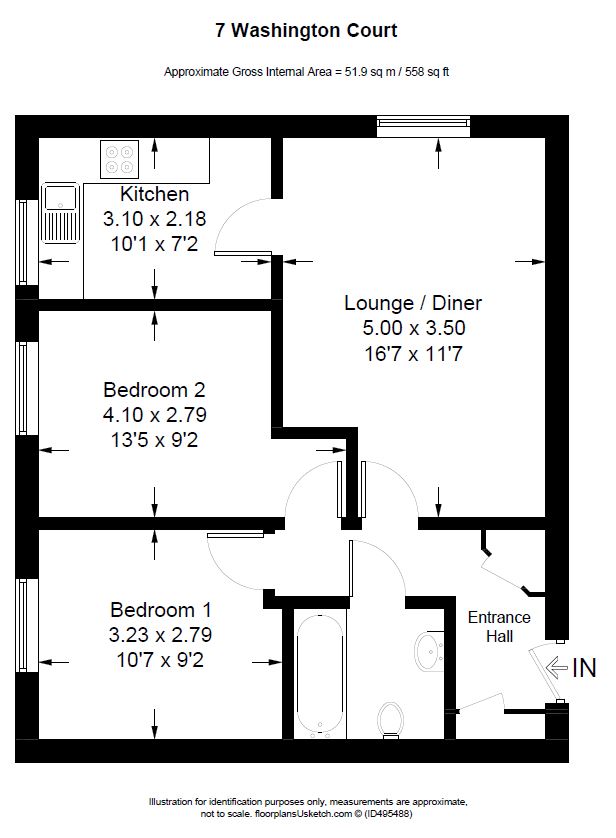 bedroom 10' 7" x 9' 2" (3.23m x 2.79m)