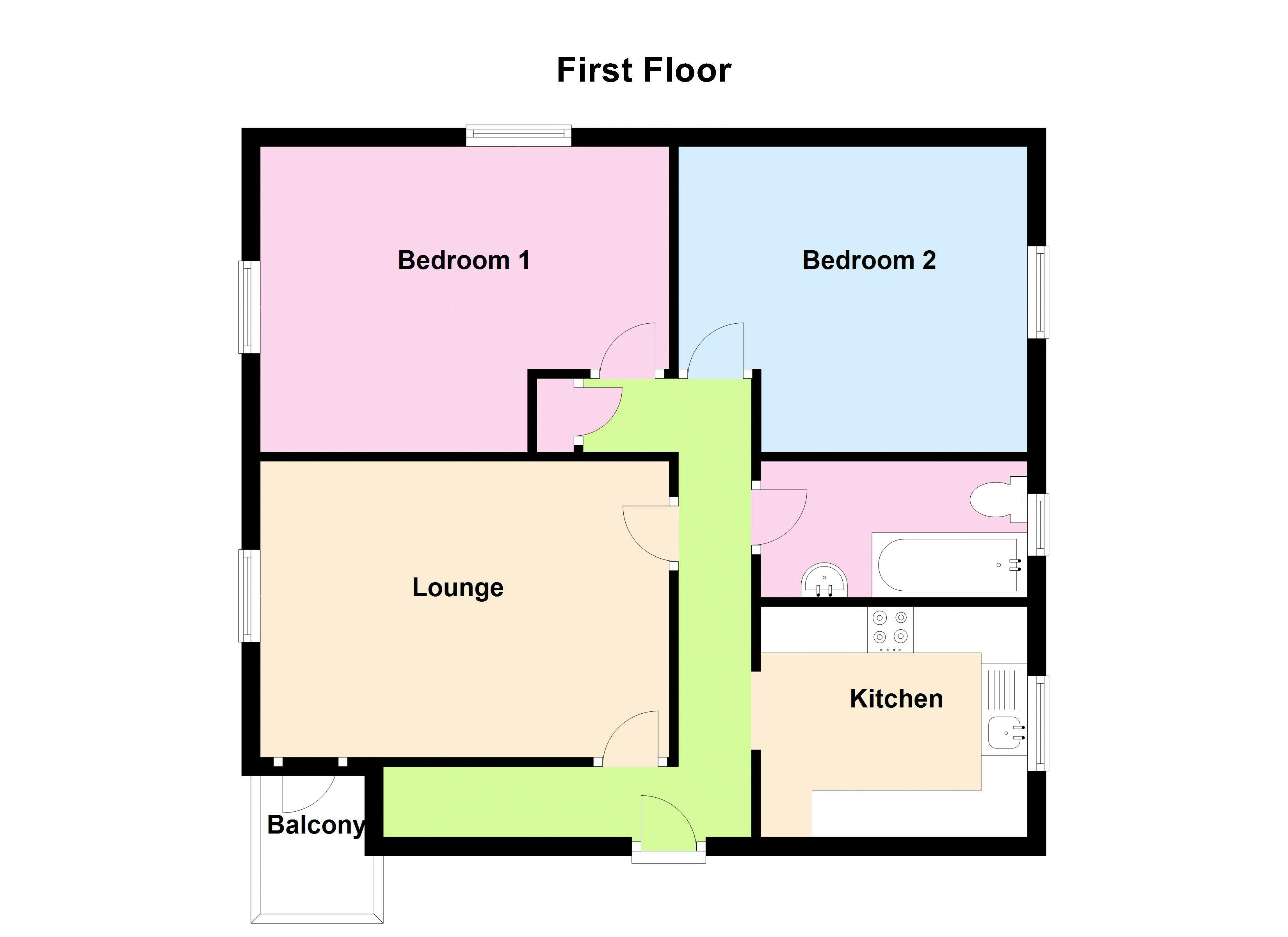 With double panel radiator, electric fire with surround, television point, PVCu double glazed window to the front and doors leading to balcony.
