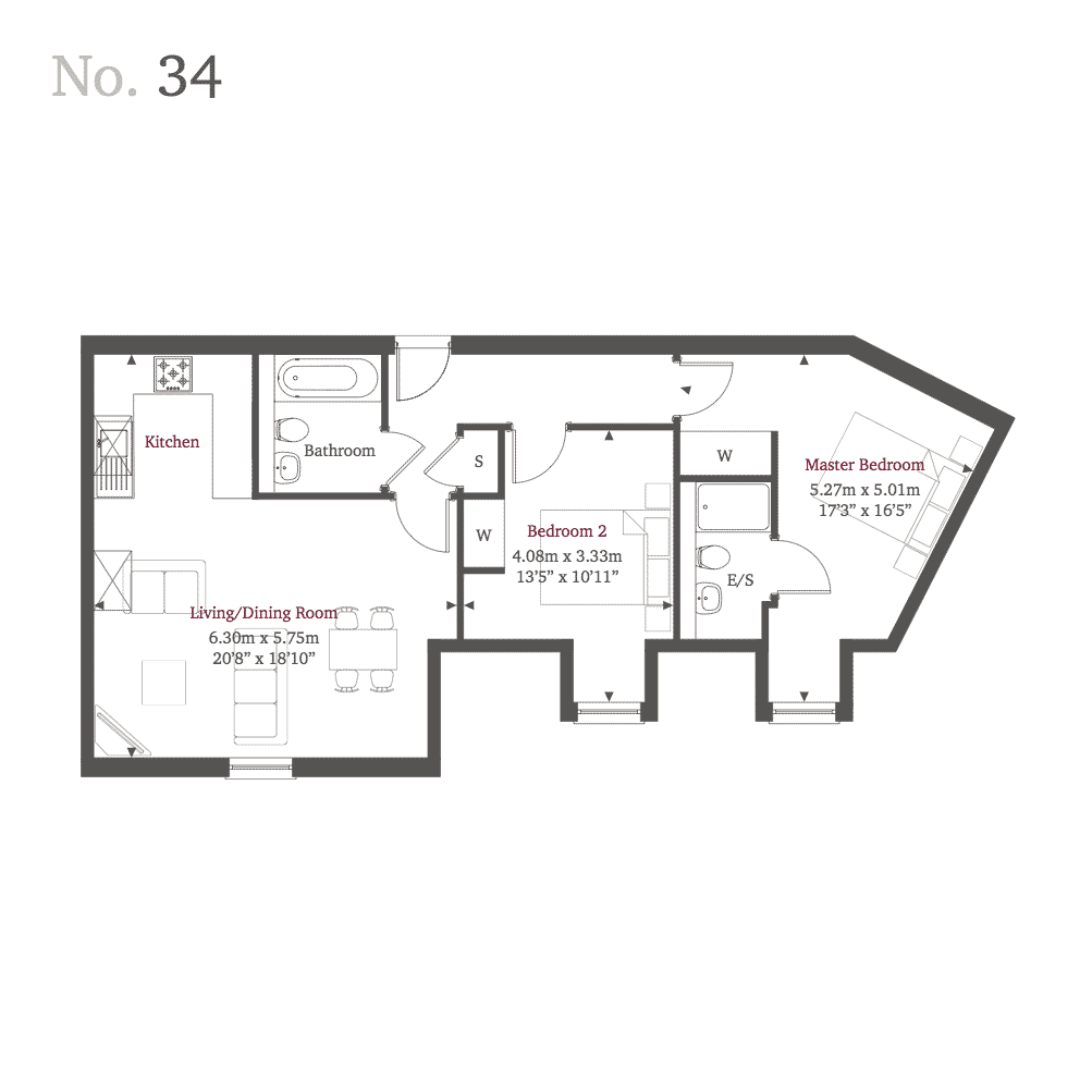 Show apartment open 7 days A week 10AM - 5PM. Plot 34 - A two bedroom third floor apartment with allocated parking space. Open plan kitchen/living/dining area, master bedroom with en-suite, fitted wardrobes and family bathroom. Bridge House is an impressive collection of stylish apartments in an enviable Surrey location near the River Thames. The latest development from Shanly Homes you will find professionally designed kitchens with integrated appliances and generous bedrooms.
