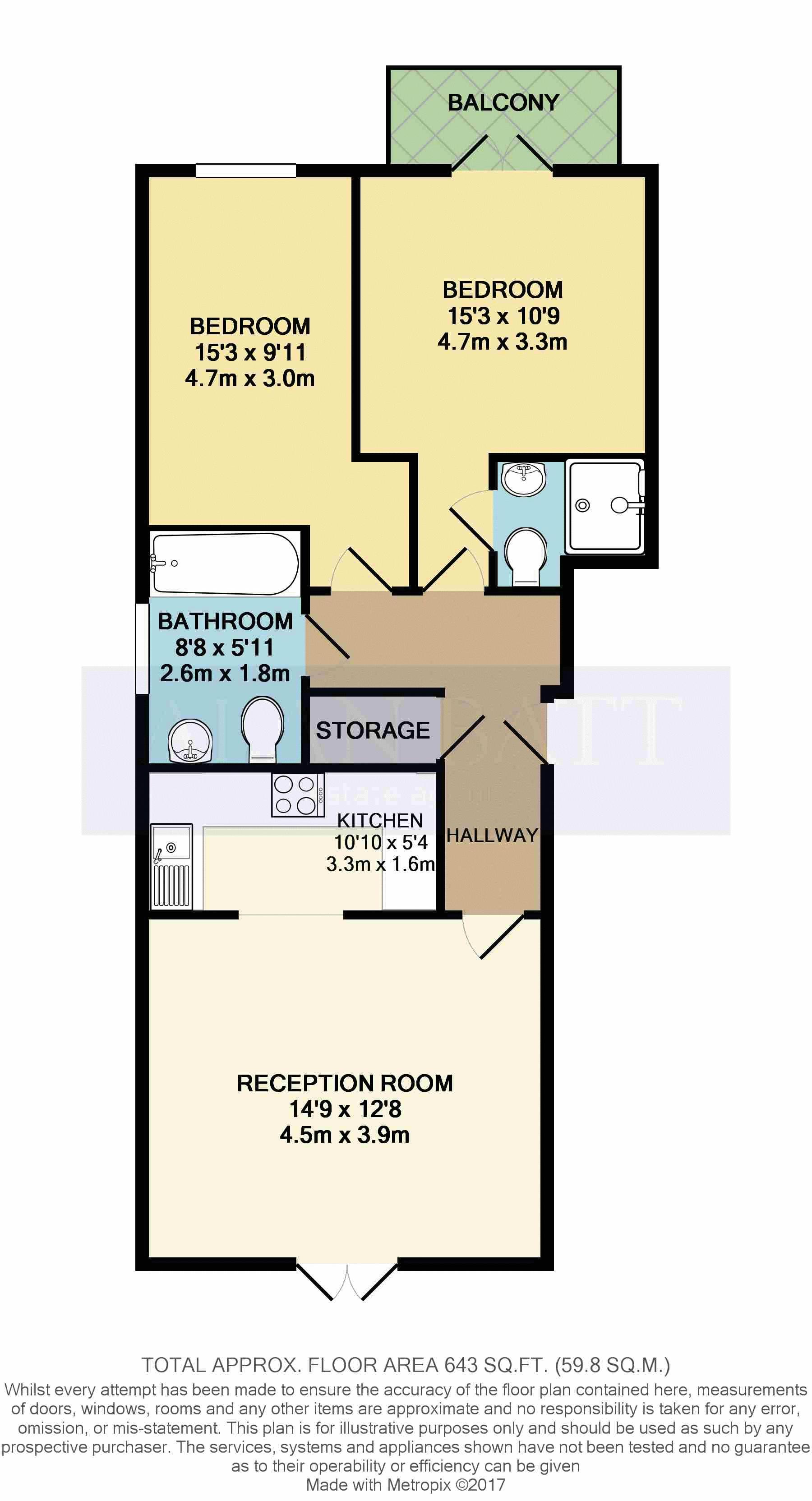 Epc rating C. Council tax band B. Approx 643 sq ft.