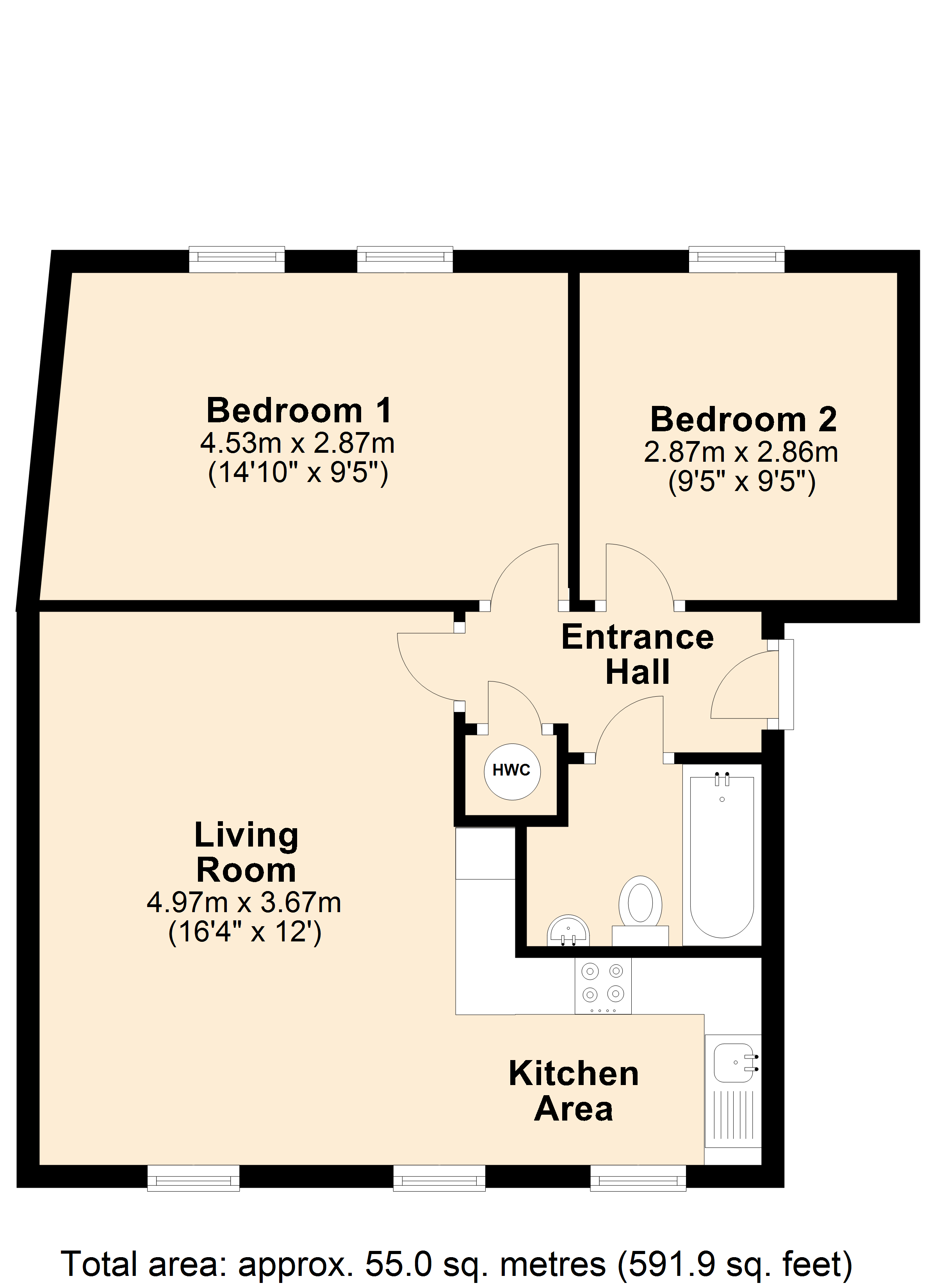 Bedroom 2: 9’5” x 9’5” Slimline electric heater, double glazed sash window, fitted timber shelving, coved and smooth plastered ceiling and television aerial point.