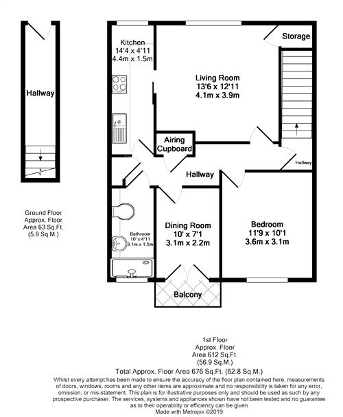 13' 4" x 12' 2" (4.06m x 3.71m)