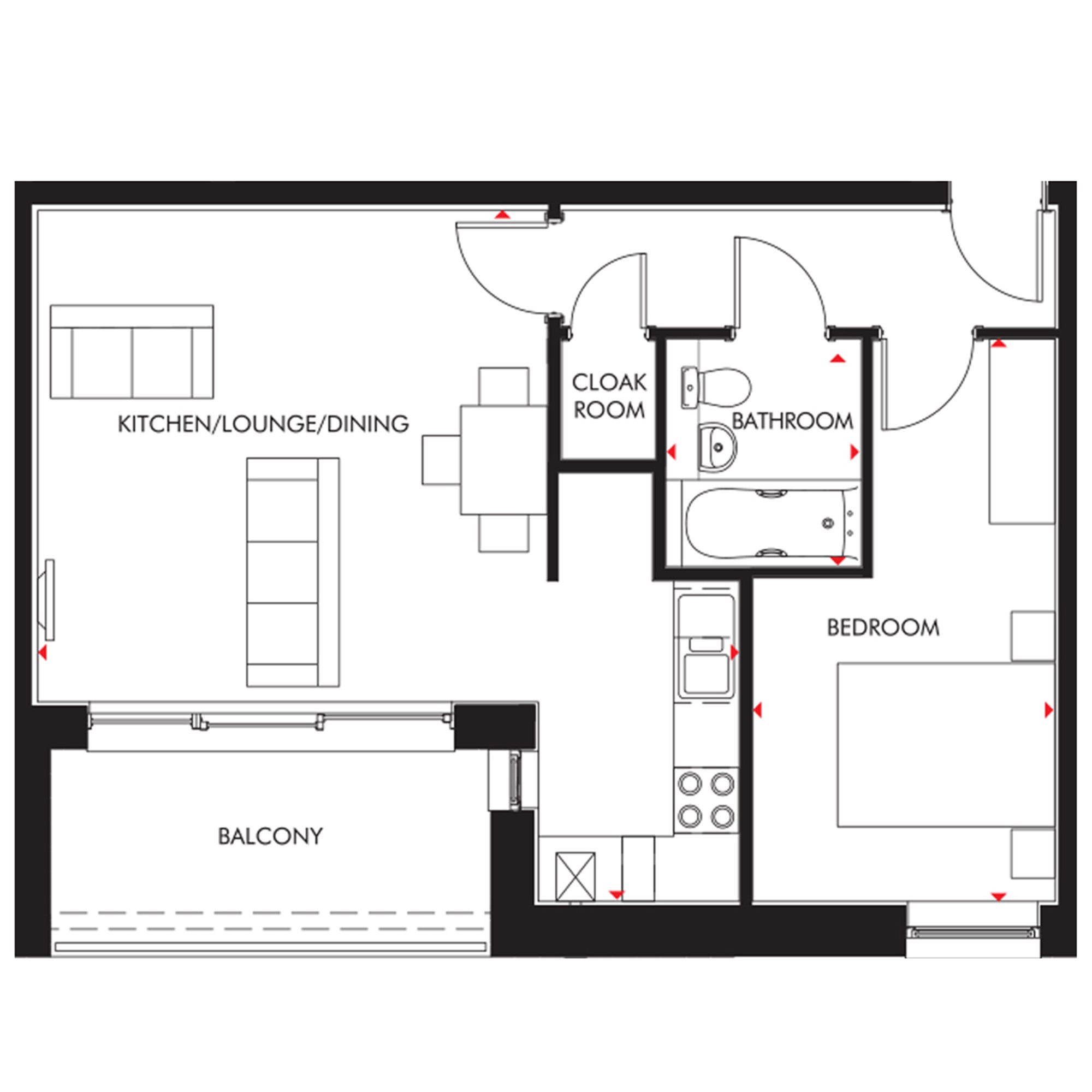 A stylish and modern one bedroom apartment ideal for first-time buyers. The heart of the home is the open-plan living space with kitchen and dining area. Complete with sliding doors that lead out to the balcony. There's one double bedroom, a bathroom with a shower over the bath and a cloakroom for storage.