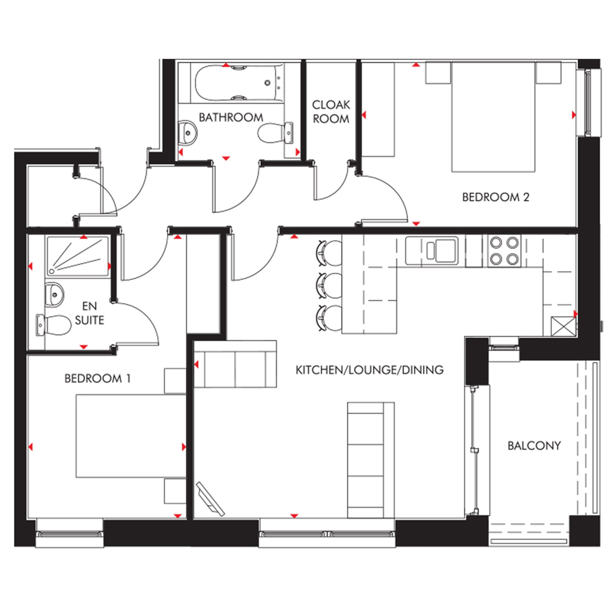 Discover luxury living in a new two bedroom apartment in Carousel House. The open-plan living space, leading out to a private balcony, is a great space for relaxing. It's an ideal choice for singles and couples with two double bedrooms, the master with en suite and a separate bathroom. A handy cloakroom and parking space completes this modern apartment.