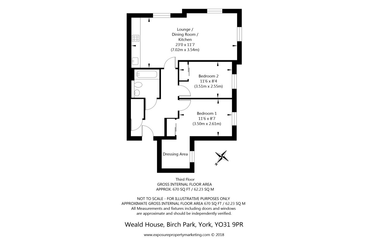 A stylish 2 double bedroom third floor apartment with a superb open plan double aspect lounge/dining room/kitchen with views towards York Minster.