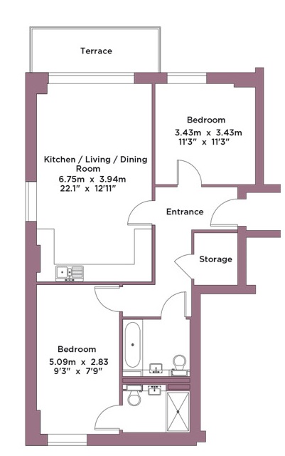 The apartment comprises a well-appointed lounge/dining area with oak wood flooring, modern kitchen featuring inbuilt appliances and natural granite worktops, fitted carpet in the double bedrooms, luxuriously finished bathrooms(one en-suite) complemented by high quality fixtures and fittings, storage space throughout and underfloor heating. There is also a large private terrace.
