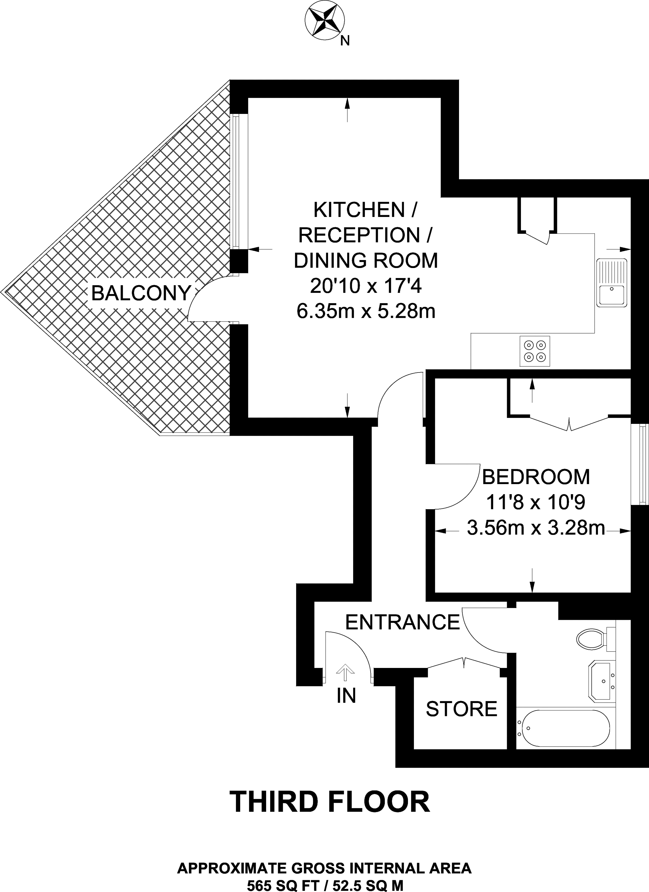 Long let. Moments from amenities and situated on the third floor of a secure development, this contemporary one bedroom flat offers an open-plan living space with a generous double bedroom and access to a private balcony.