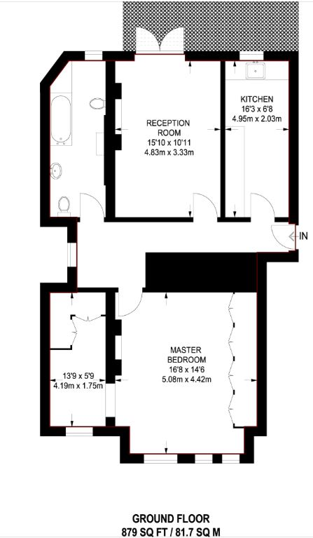 A spacious one bedroom ground floor flat in a fabulous location of this period conversion. With bright and airy natural decor. Features include large reception room, modern separate kitchen, a balcony and dressing room/study area adjoined to a sizeable Master double bedroom.