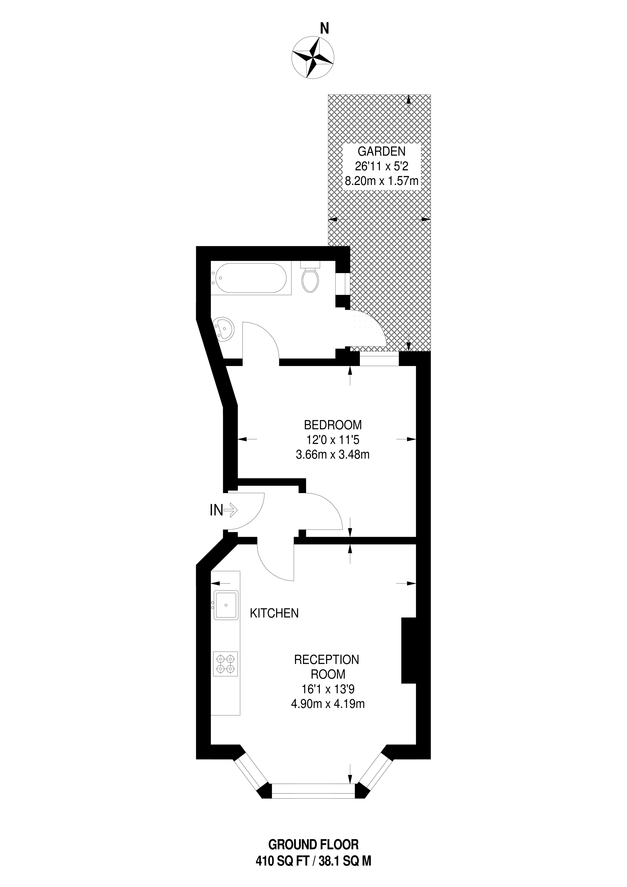 Long let. Recently redecorated to a good standard throughout, this delightful one bedroom ground floor flat boasts an open-plan kitchen, double size bedroom, white suite bathroom and a private garden.