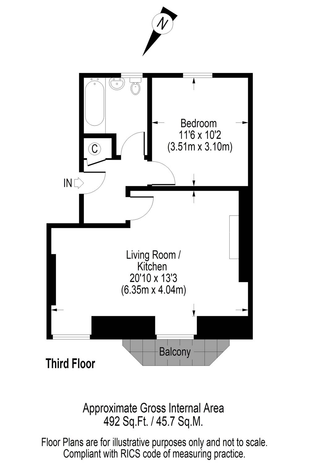 - Approx. 492 sq ft / 45.7 sq m. EPC=E