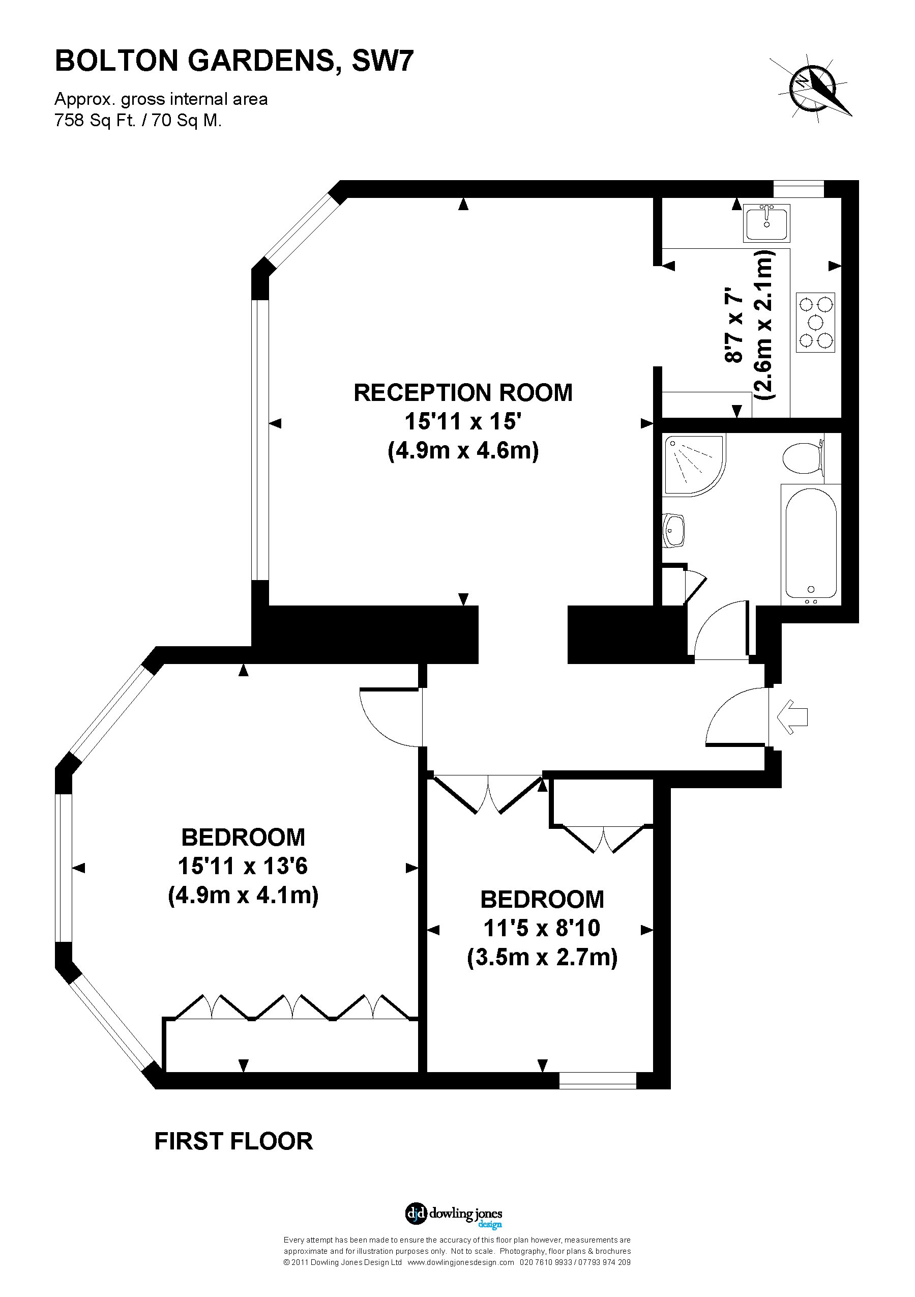 The kitchen is semi open plan to the living room with granite work surfaces, high specification appliances and white gloss units. The master bedroom is large with a full wall of fitted storage. Second bedroom/study with storage space. The bathroom is stylish with a roll top bath, separate shower cubicle, under floor heating and heated towel rail. Access to Bramham Gardens communal gardens by separate negotiation. Bolton Gardens is quietly located conveniently for Gloucester Road and Earls Court tube stations. Energy Rating: E
