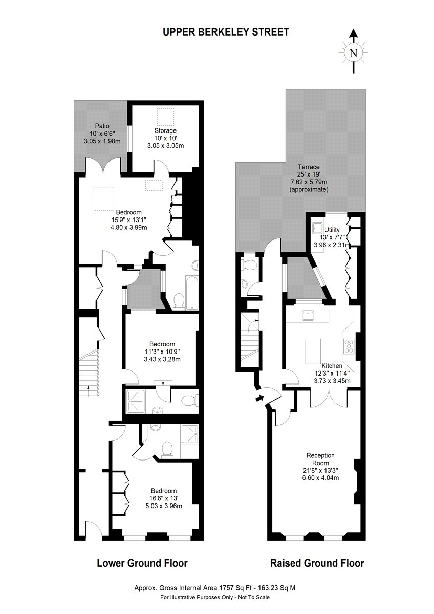 floors and leading to a contemporary fitted kitchen, generous utility room, guest cloakroom & decked terrace - fantastic space for entertaining. Downstairs there are 3 good size double bedrooms all with en-suite bathrooms (2 shower room + 1 Bathroom), excellent storage and 2nd patio.