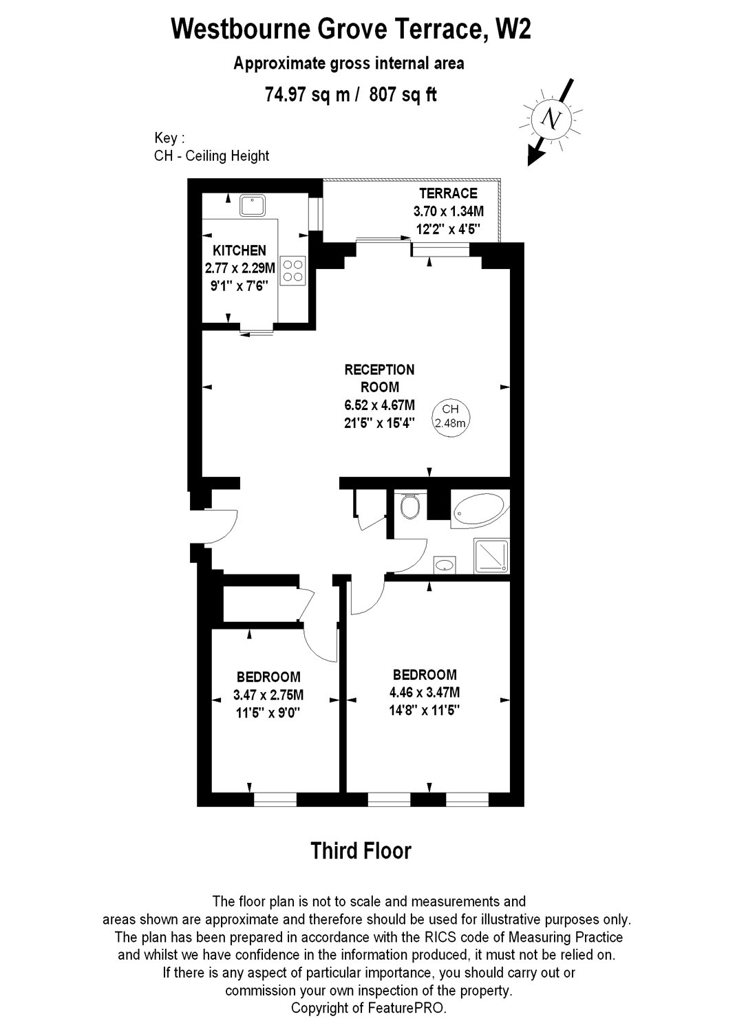 The property comprises a bright reception room with south-facing balcony, separate kitchen, two double bedrooms and a bathroom with walk in shower. The apartment is located in a purpose built block, with lift, on Westbourne Grove Terrace.