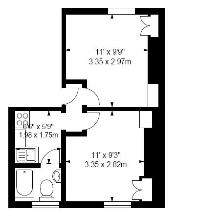 Separate kitchen with fridge and cooker/oven