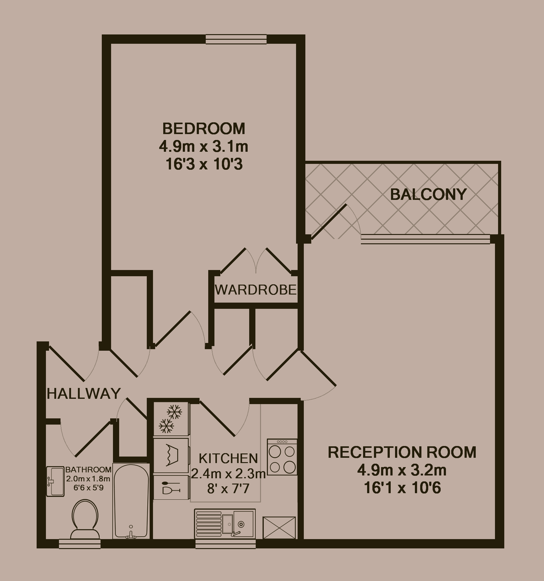 Living Room 4.9m (16'1) x 3.2m (10'6)