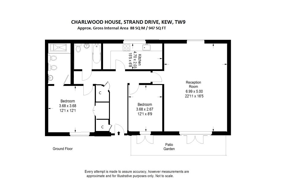 Charlwood House is quietly located within Kew Riverside Park, abutting the river Thames, and a short walk from Kew Retail Park. Kew Gardens station is approx half a mile away and Kew Bridge on the north London mainline is approx 1 mile.
