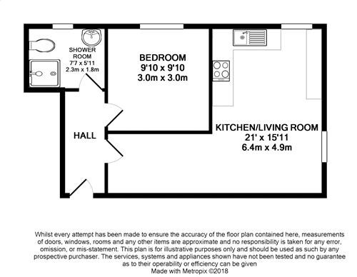 Internally the property features an open plan kitchen living area, double bedroom and shower room. Benefits include double glazing throughout, gas fired central heating and a secure door entry phone system.