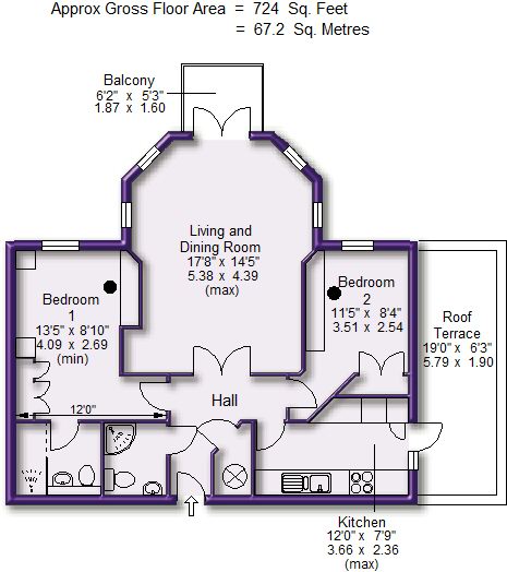 The property has been considerably updated and improved with high specification Kitchen and Bathroom fittings and provides a spacious combined shaped Living and Dining Room with vaulted ceiling and French doors onto the balcony, a well appointed Kitchen with access to the Roof Terrace and has Two Double Bedrooms, both with built in wardrobes, served by Two stylishly appointed Shower Rooms, one being En Suite to the Principal Bedroom.