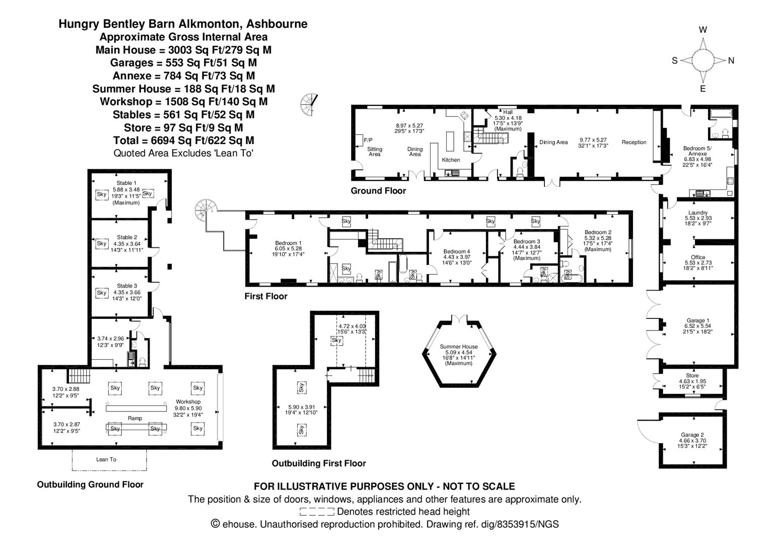 The property is approached through electrically operated double gates which leads to an extensive driveway providing off road parking for a multitude of vehicles. The double garage has potential to be utilised as a games room, gym or office space, subject to planning. The grounds measure circa 3 acres with formal grounds that include a summerhouse, a paddock, three stables and tack room, a 60m x 20m ménage and a large workshop.