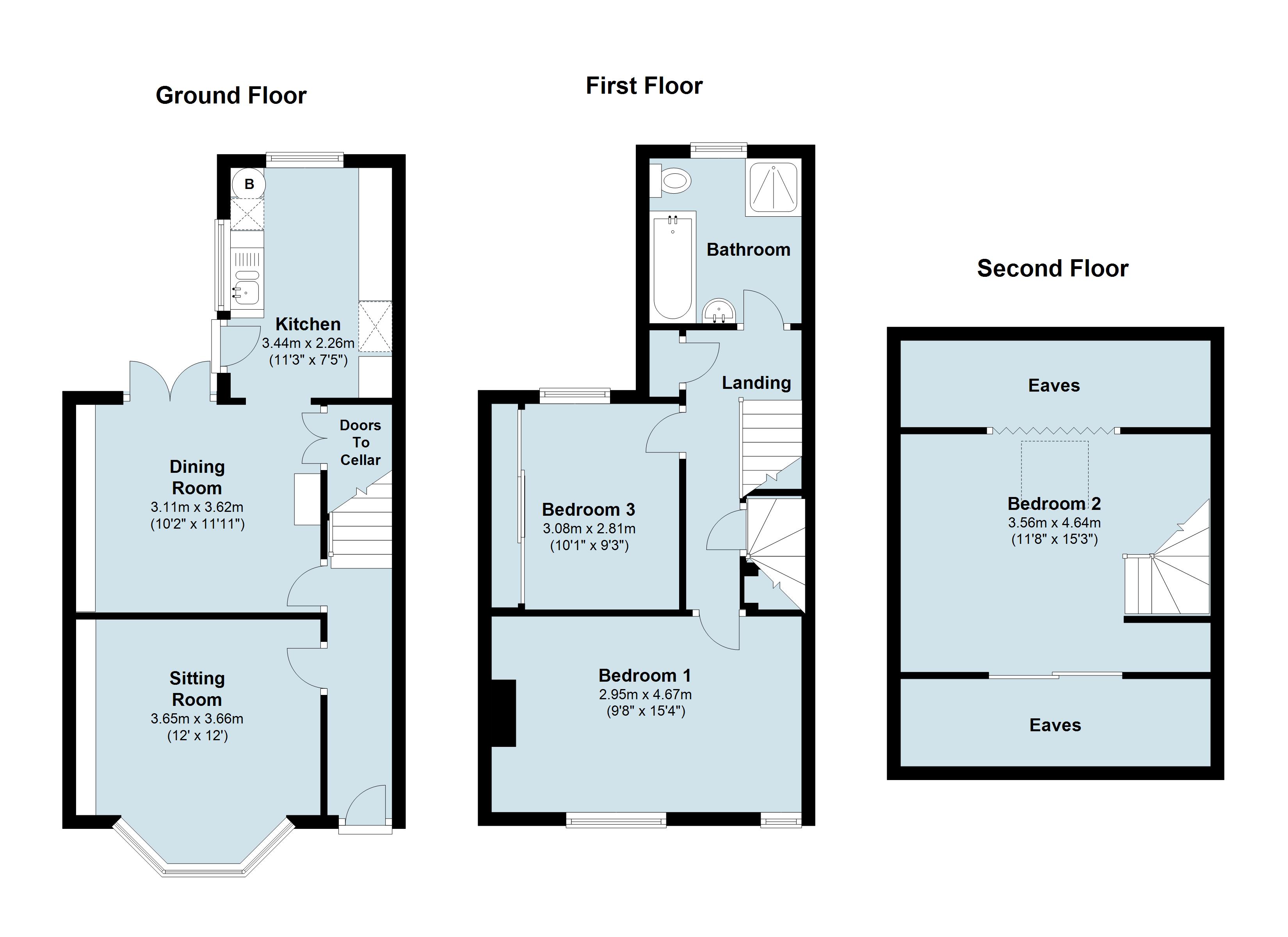 The landing benefits from a skylight and two storage cupboards. The master bedroom is located at the front of the property with two UPVC double glazed windows. Bedroom three has the benefit of three floor-to-ceiling sliding door wardrobes and a double glazed window to the rear elevation. The family bathroom is located to the rear of the property and is fitted with a coloured co-ordinated four-piece suite. From the first-floor landing a door provides access to a further staircase rising to the second floor accommodation, having a double bedroom with recessed lights, double glazed skylight and access either side into a generous eaves storage.