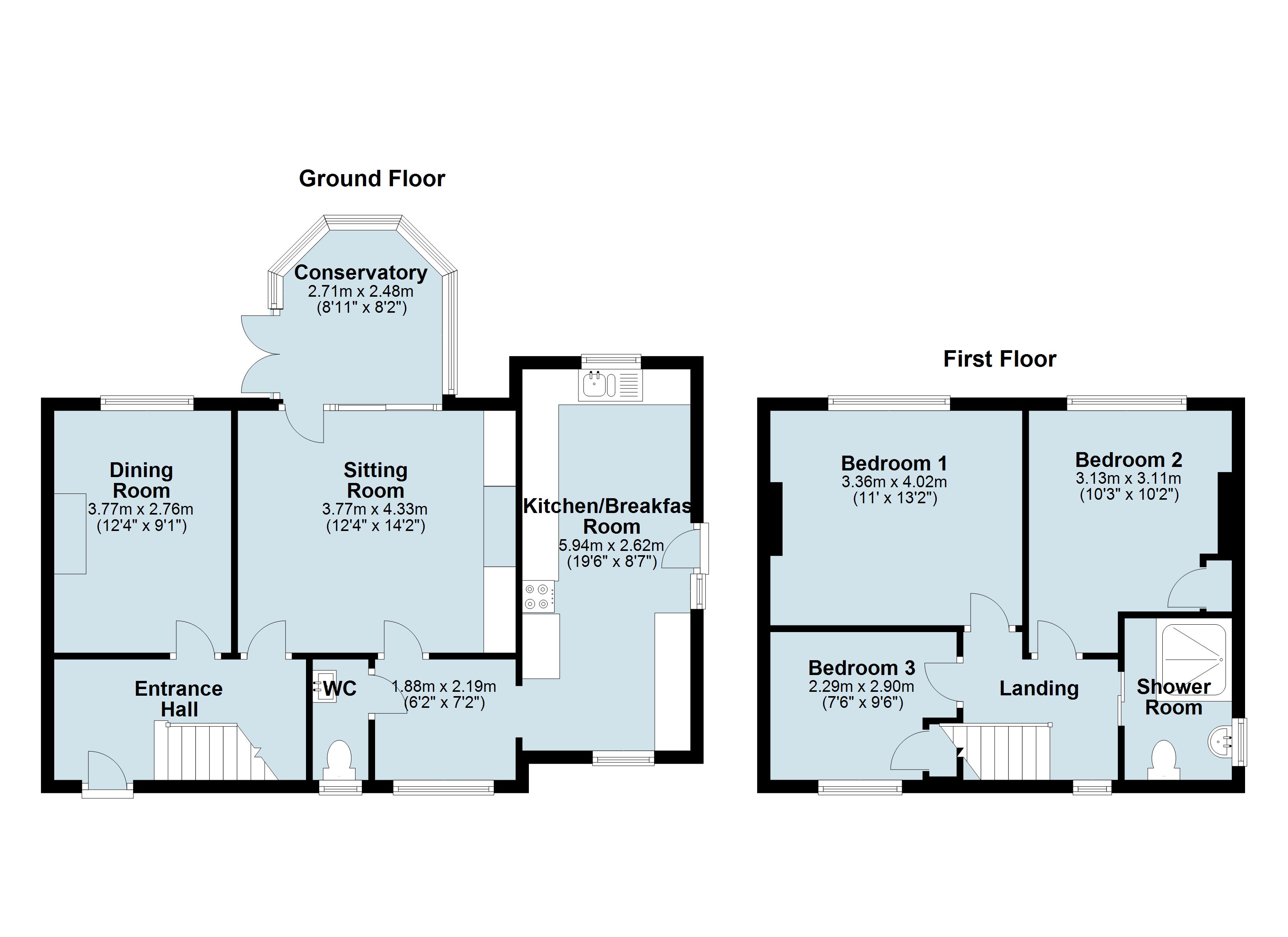 Opaque leaded double glazed entrance door to the entrance hall with rear dining room and separate sitting room having a feature fireplace with marble style hearth and mantle. Off the sitting room is a conservatory with wood effect flooring and study area with separate access to the ground floor WC. Accessed from the study area, an archway leads to the generous breakfast kitchen with windows overlooking the rear gardens and door to the side elevation.