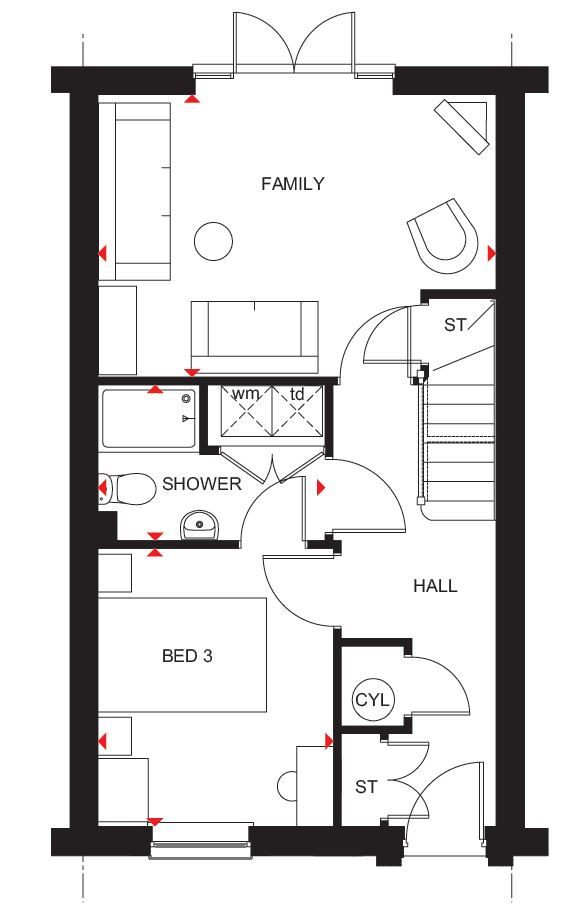 This three bedroom townhouse features a family room and a double bedroom with shower room on the ground floor.