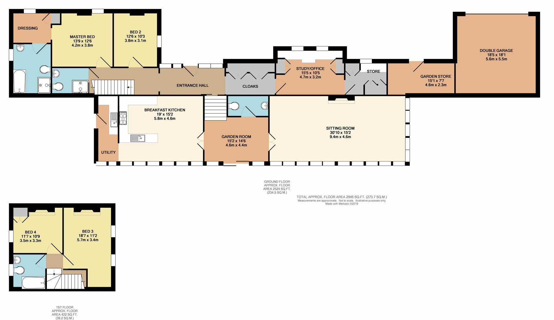 The property briefly comprises on the ground floor: Entrance hall, cloakroom, study/office, store, inner hallway, bedroom 2, master bedroom, dressing room, master en-suite, shower room, garden room, WC, sitting room, breakfast kitchen and utility room.