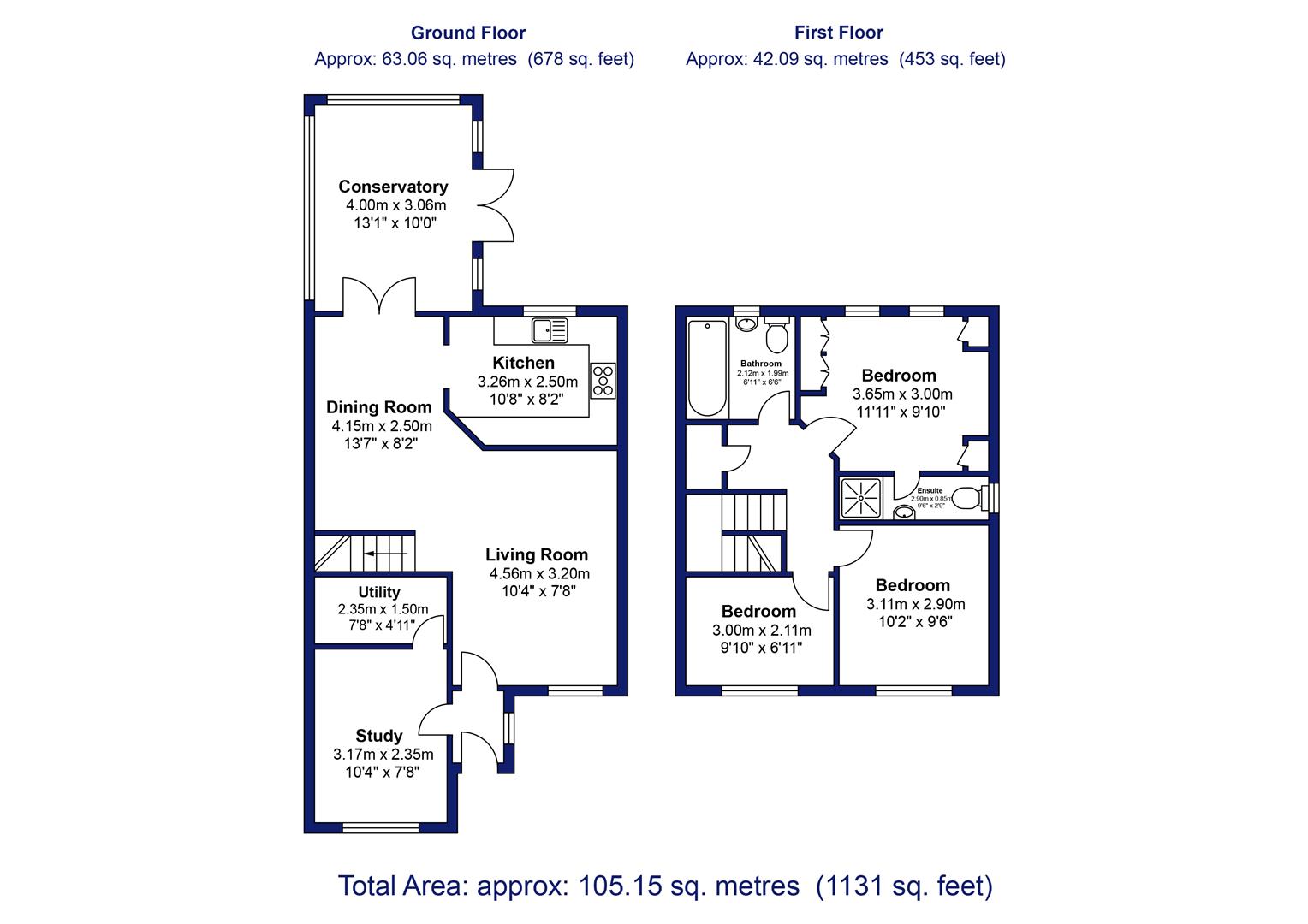Upstairs you have three bedrooms, two doubles and a single. The house bathroom is fitted with a free standing bath but if you prefer a shower you have an ensuite shower room in the master bedroom.