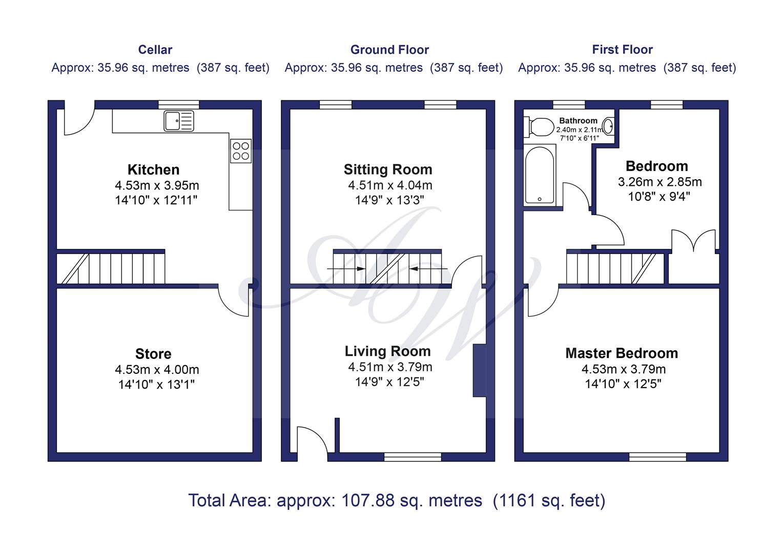 Straight into the lounge on the middle floor and here you have two reception rooms, one to the front and the second at the back which has lovely open views towards the Wayoh and the neighbouring Village of Chapeltown beyond. Down the stone steps and you are on the lower ground level where you have a spacious kitchen. As you will be re-fitting the kitchen you can plan this area how you like, many on this row have added larger windows to the back to get more light here. There is a back door leading out to the courtyard and on the opposite side of the kitchen a step up to the storage room, this is a very handy space rarely found in properties of this type.