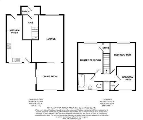 18' 4'' x 10' 0'' (5.6m x 3.05m) Double glazed window to rear, double glazed door to garden, double glazed door providing access to front garden, the kitchen comprises of a good range of fitted wall and base units with matching worktop surfaces over, 1 1/2 bowl sink drainer unit with mixer tap, space for upright fridge/freezer, space for washing machine, built in oven, hob & extractor, tiled splash backs, storage cupboard, tiled effect laminate floor.