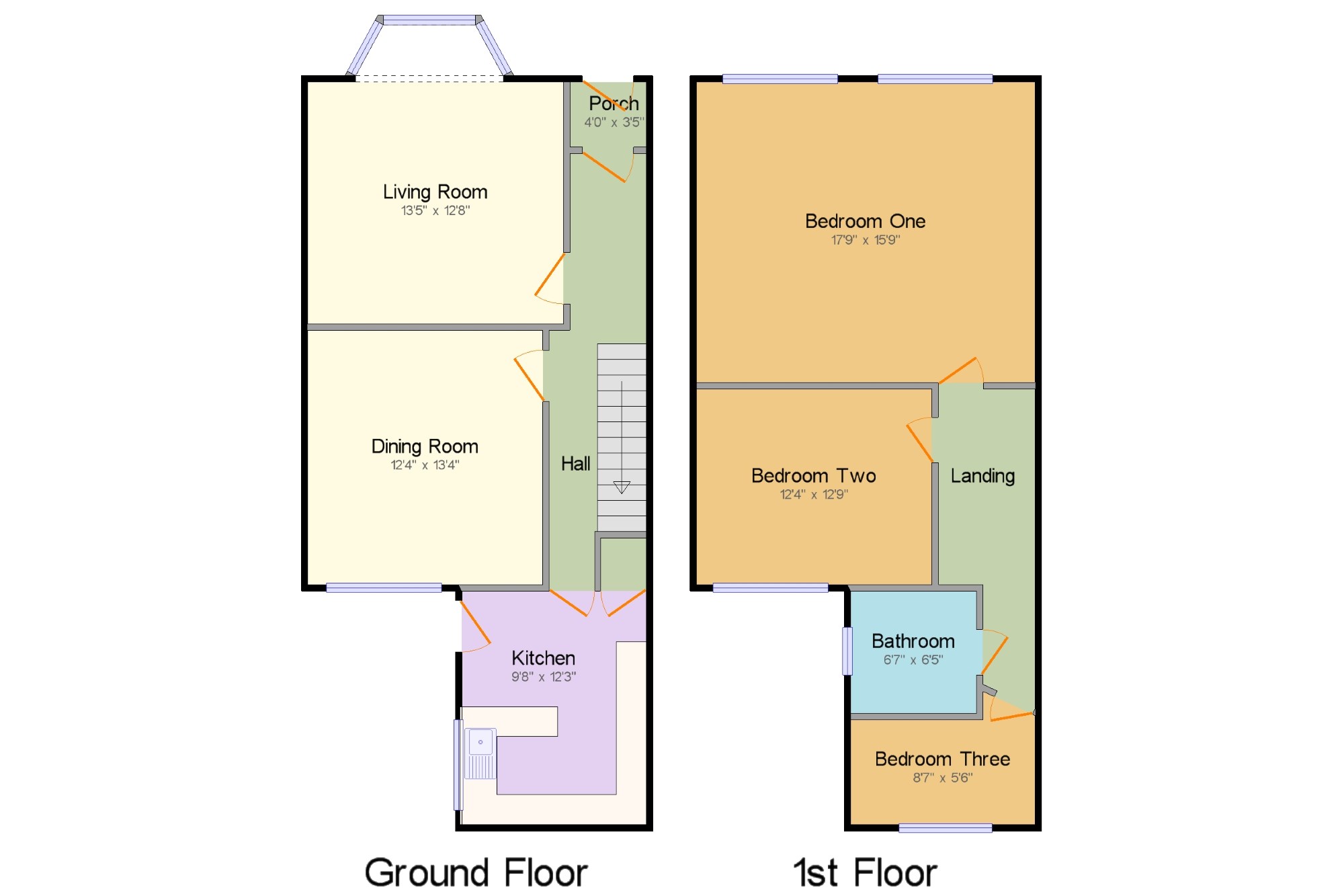 Porch 4' x 3'5" (1.22m x 1.04m). Front and porch doors with mosaic glass. Tiled flooring.