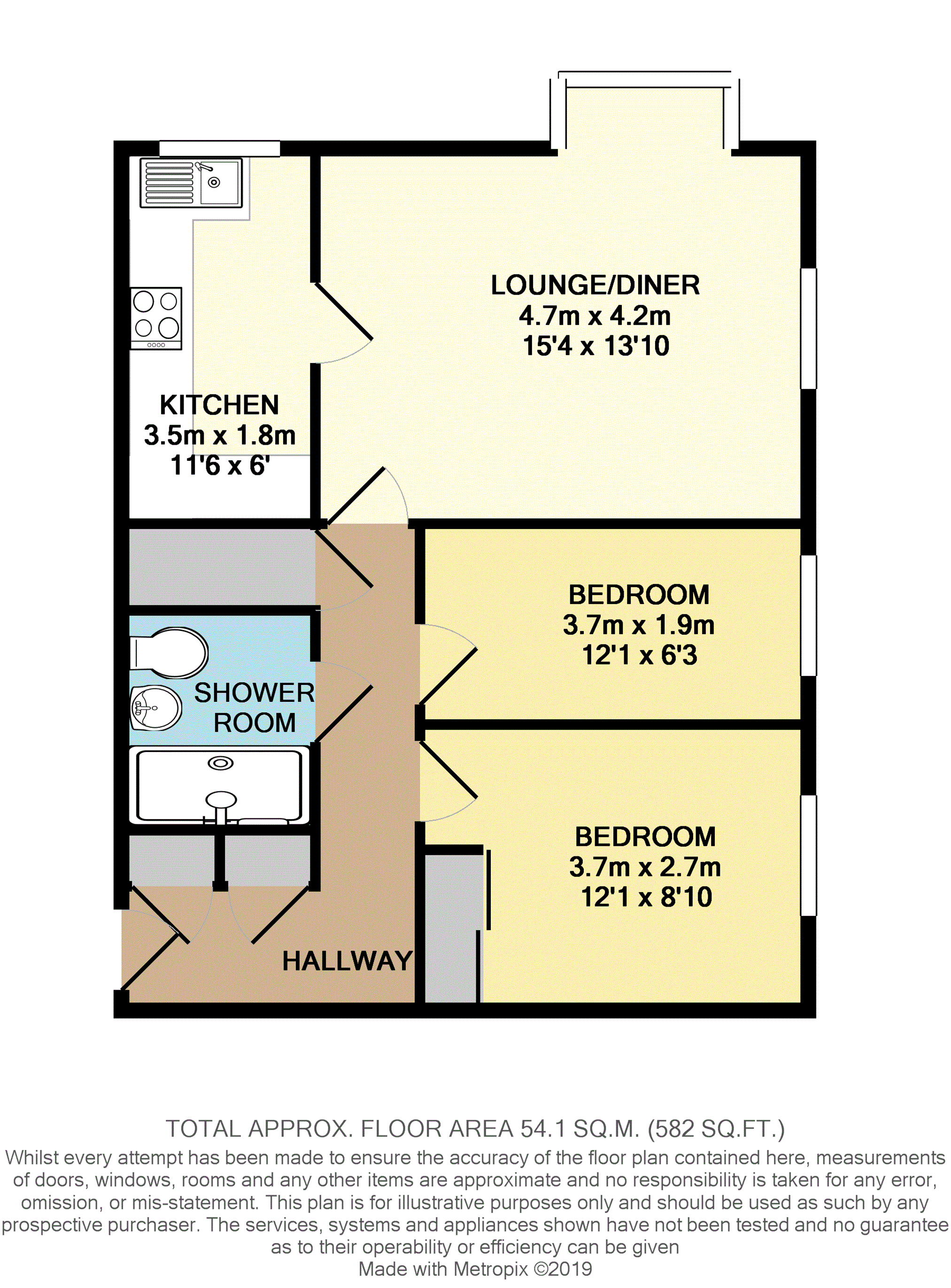 Via entrance door, entry phone system, twin built-in storage cupboards, large built-in airing/storage cupboard housing hot water tank, electric storage heater.