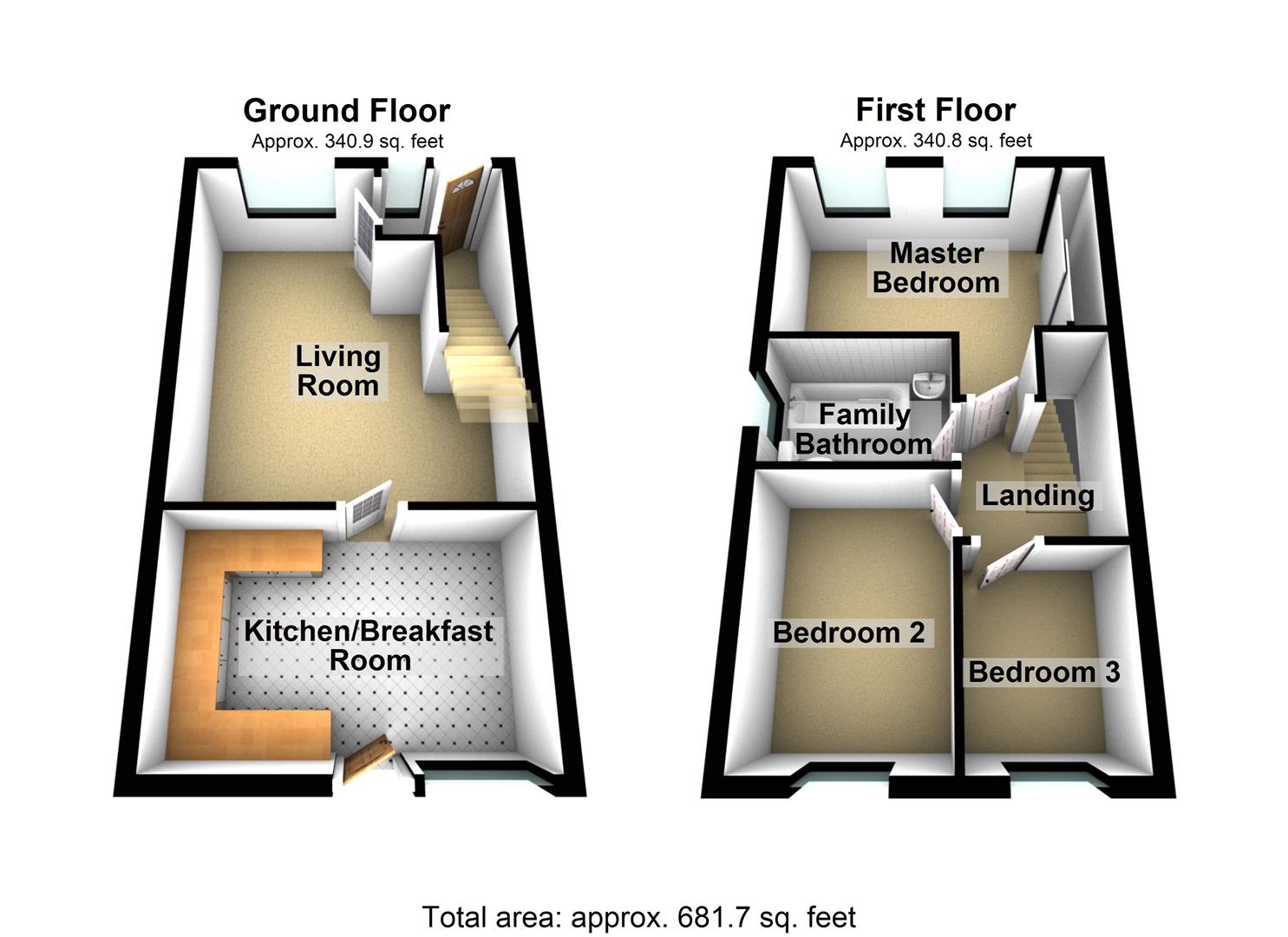 The entrance hall is accessed through an obscure uPVC double glazed door with matching side panel, radiator, textured ceiling, ceiling light, stairs leading to first floor landing. Door to living room.