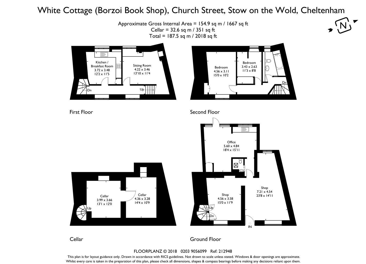 The Borzoi Bookshop leases the ground floor premises and has been established at White Cottage for nearly 35 years. The commercial shop comprises a series of rooms and in the south east corner, to the front of the shop, is a staircase to the basement and a staircase to the first floor living accommodation. A door at the rear of the property gives access to a charming partly walled garden, a potential remnant of a burgage block.