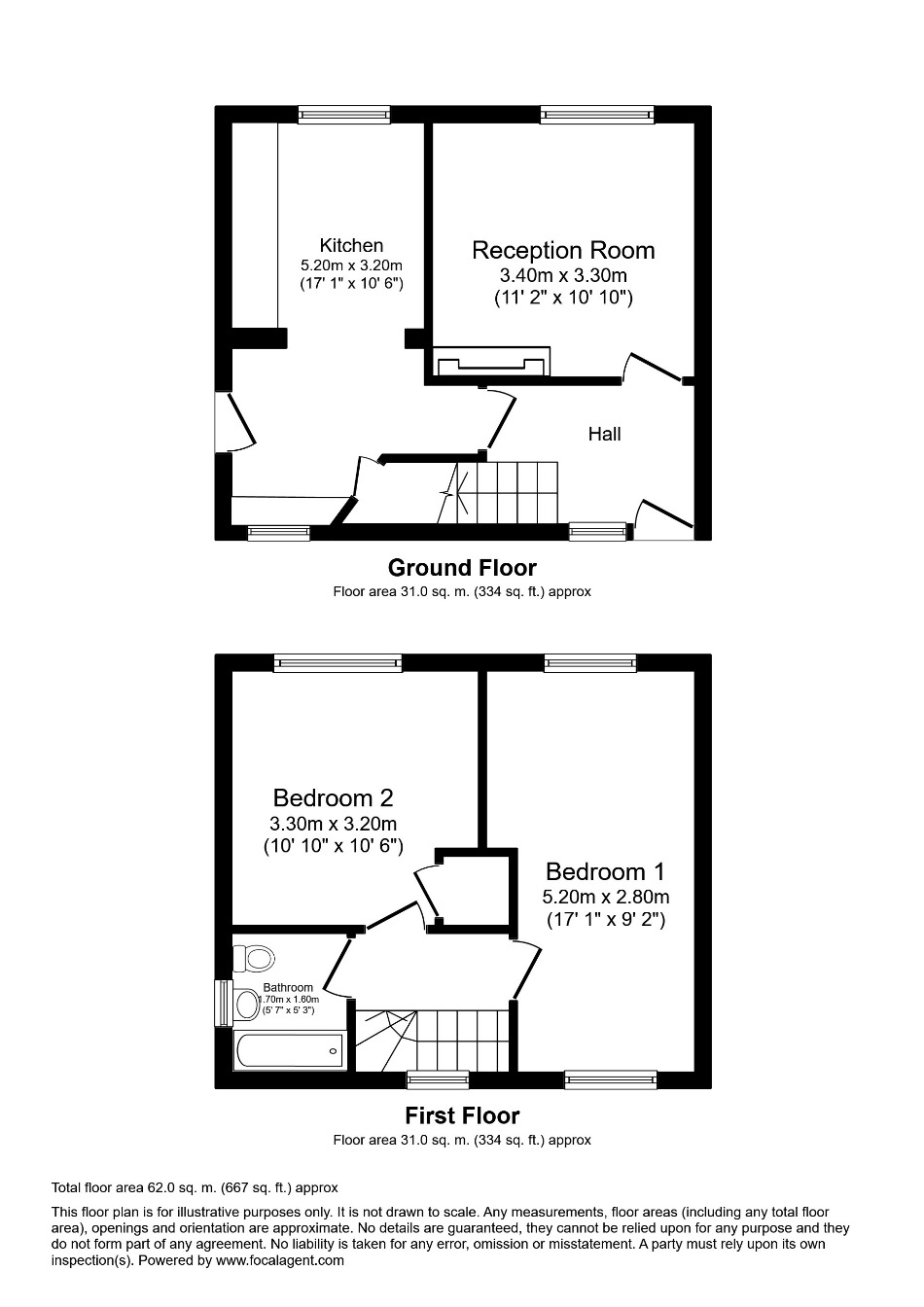 Bedroom 1 5.20m x 2.80m (17"1 x 9"2)