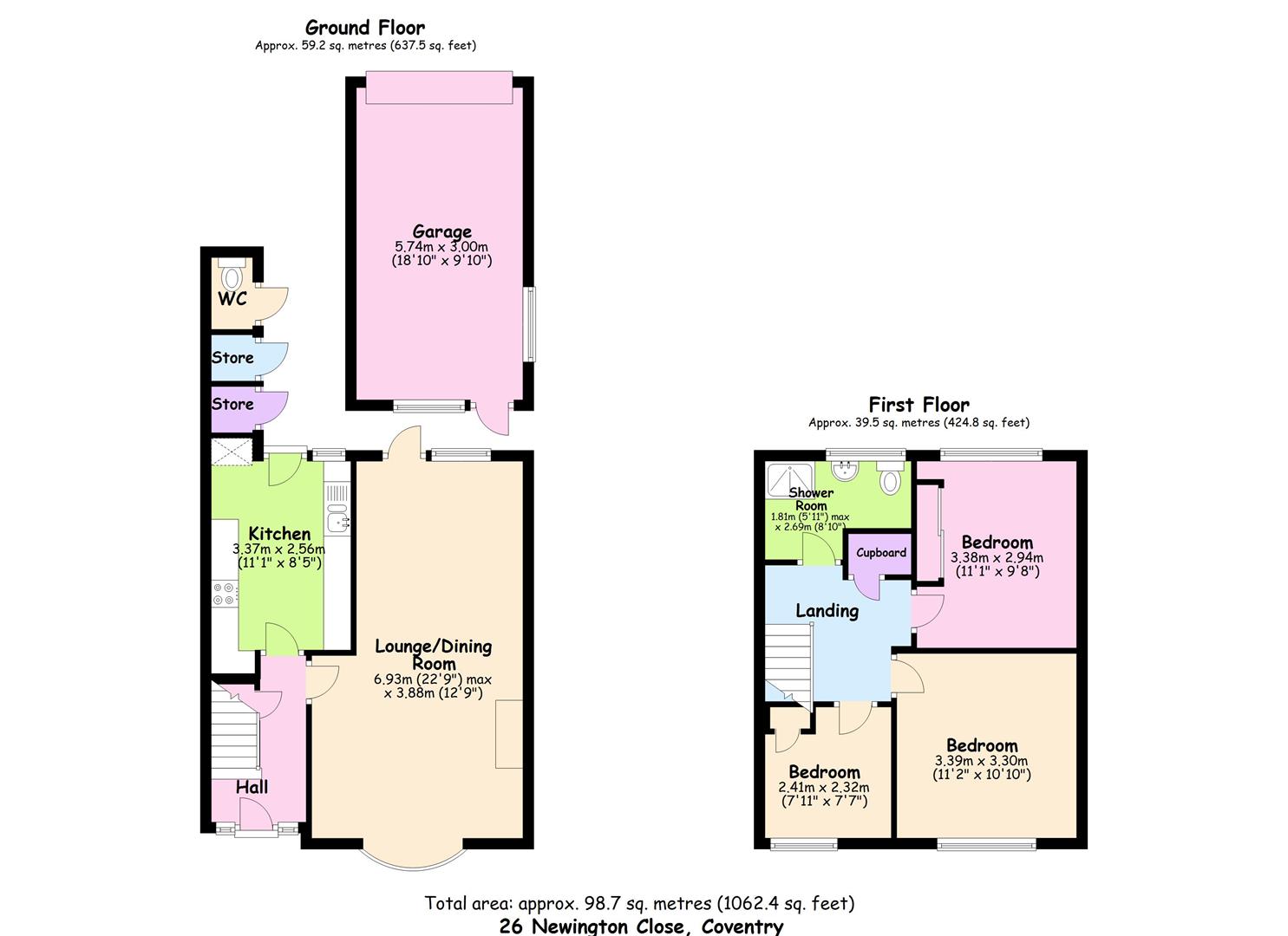 On the first floor there are three bedrooms (two doubles and one single) and a modern shower room with a large low level shower tray and a white suite. There is loft space with a drop down ladder boarded for storage.