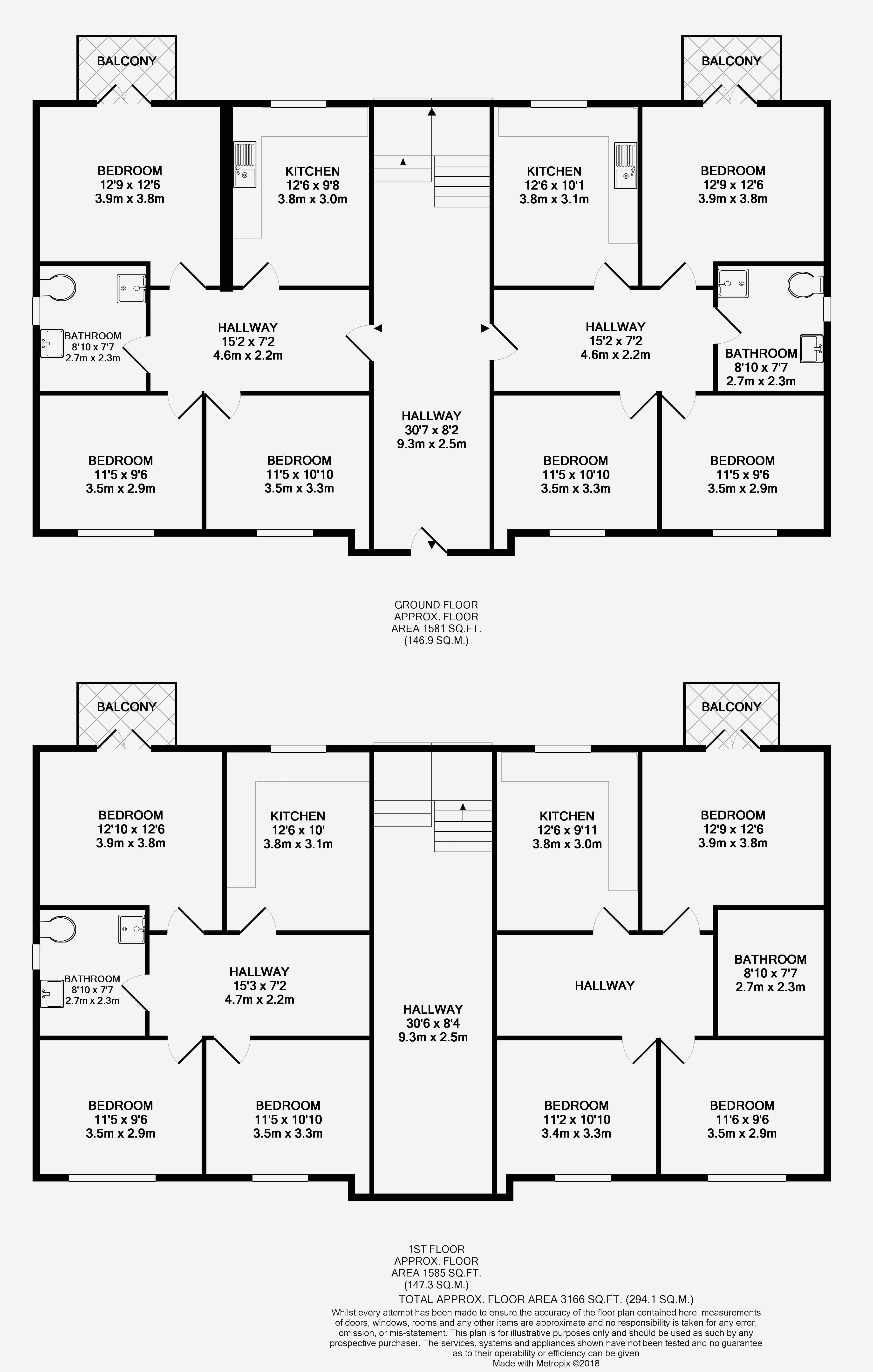 The block is symmetrical in design with a large shared hallway servicing flats 3 and 4 with stairs to the rear which services flats 1 and 2.