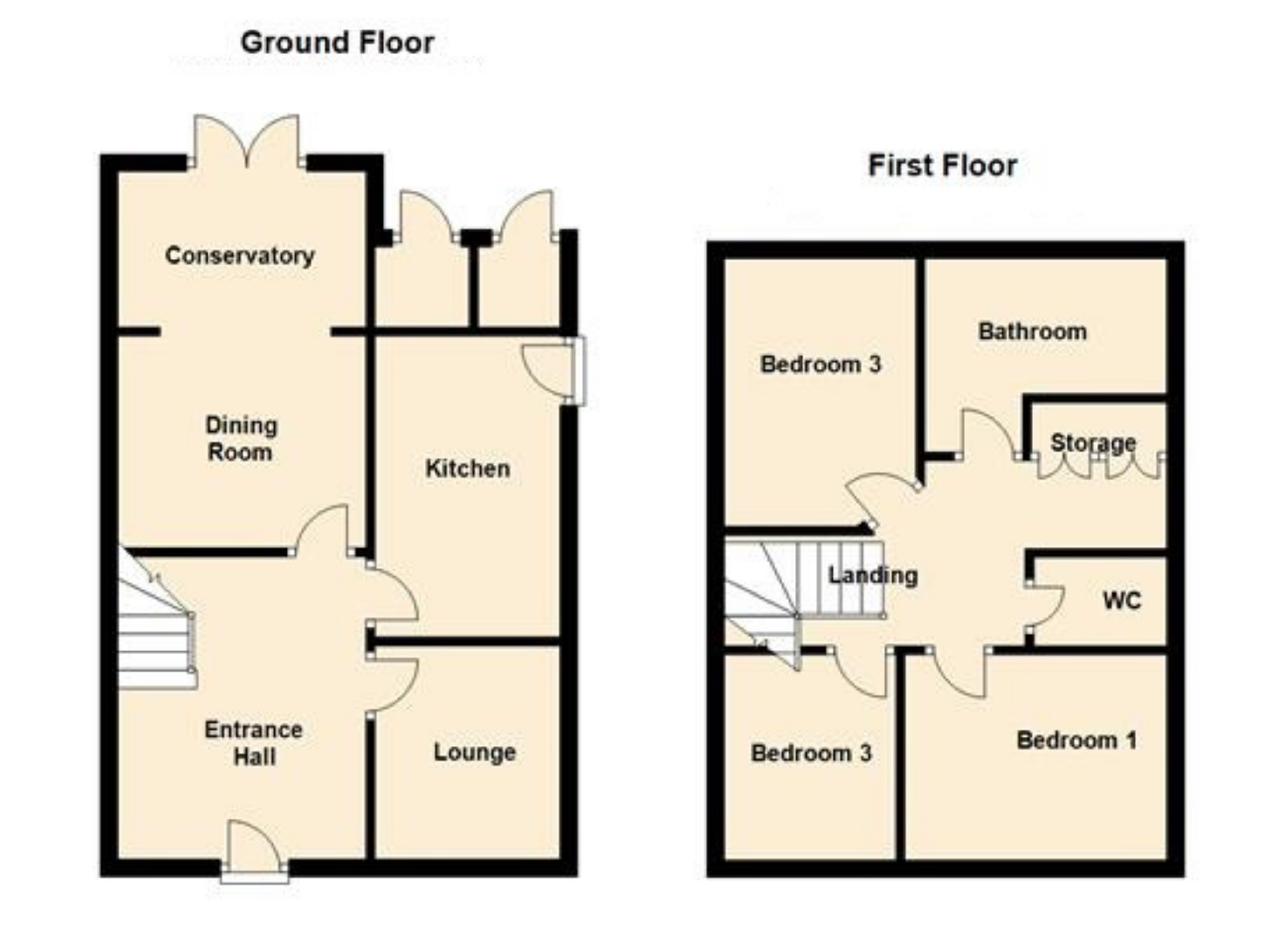Doors to all bedrooms and bathroom, fitted carpet, windows and built in storage cupboards.