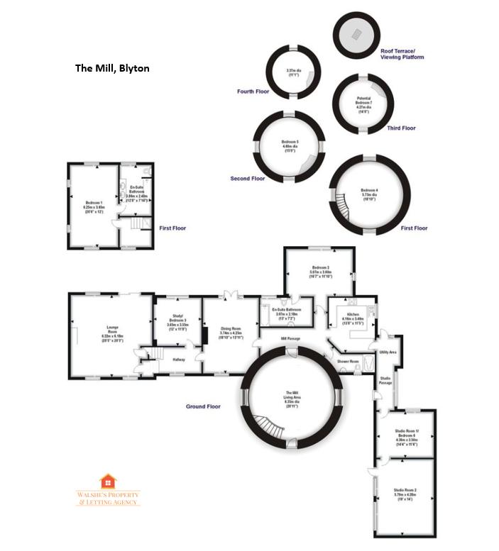 The Mill is a five storey decommissioned Flour Mill, boasting a great family room with the original cogs still on show, and a roof terrace, which offers superb views over Northern Lincolnshire.
