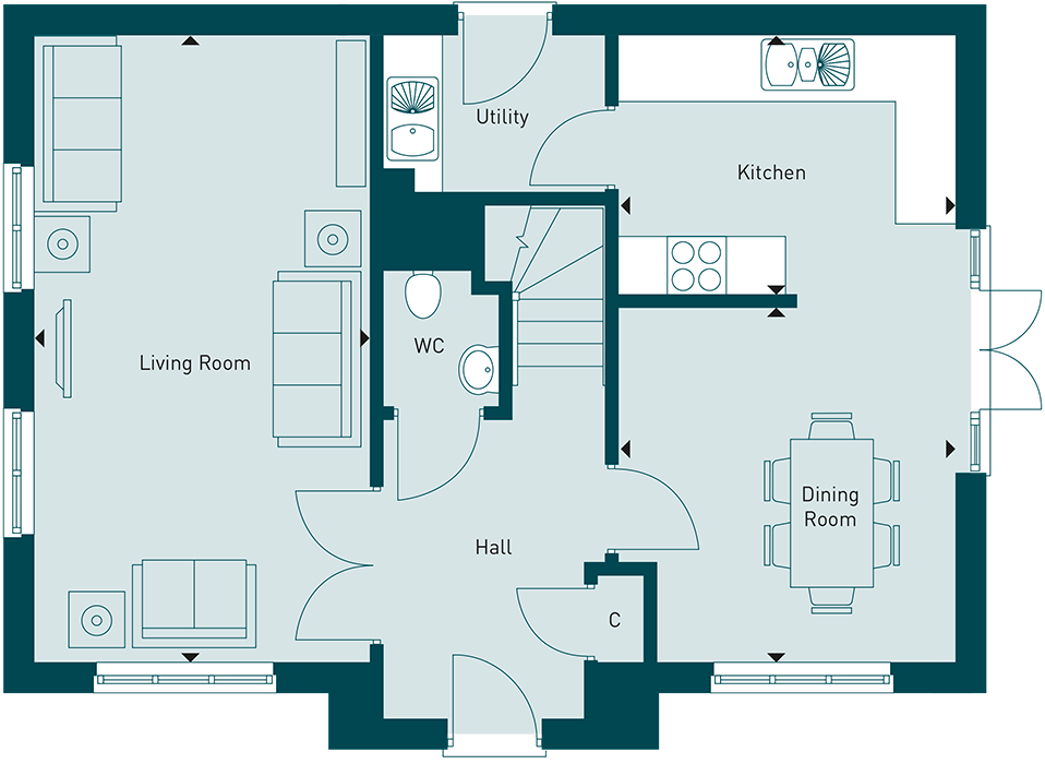 As soon as you step in to the generous hallway, you get a light and airy feeling with The Welwyn. This well balanced traditional home offers a spacious lounge, all important cloak room, store cupboard and open plan kitchen dining room with a separate utility, perfect for those laundry days. Upstairs is the crisp clean lined bathroom and four generous bedrooms, the master with en-suite and fitted wardrobe.