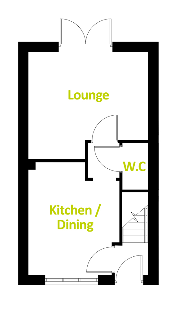 Behind the traditional exterior of The Haxby is a modern, well-designed home that makes great use of space and light. This 2 bedroom home has a great level of specification throughout and includes features such as a flexible kitchen/diner, large lounge with French doors leading to the garden and a WC. Upstairs you’ll find a stylish family bathroom and two generous bedrooms, one with built in storage.