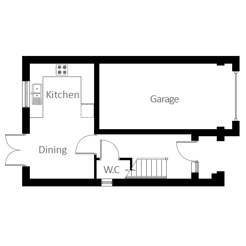 The ground floor features a kitchen / dining room with French doors leading onto a private rear garden, a downstairs W.C and single garage.