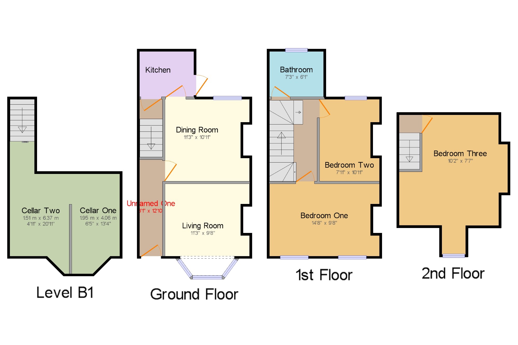 Kitchen7'3" x 6' (2.2m x 1.83m). UPVC door opening onto the yard. Double glazed uPVC window. Vinyl flooring, base and wall units. Door leading to the cellar.