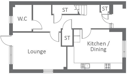 The Loxley is a spacious 3 bedroom family home, with the downstairs holding a generous lounge overlooking the rear garden. The ground floor boasts a fully-fitted contemporary kitchen / dining area useful for those family gatherings! The good-sized hallway gives an open, airy feel as you walk into the home. The ground floor also hosts much needed storage and a convenient W.C. Up the stairs to the first floor and here you will find 2 double bedrooms, a single bedroom and the spacious family bathroom.