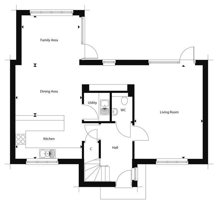 A stunning family home with space for everyone. The kitchen/dining/family area provides the perfect entertaining area for friends and loved ones. Both the living room and family area benefit from full height windows with doors to the garden, adding to the feeling of light and space. There is a separate utility, downstairs cloak and under stairs storage. Upstairs the main bathroom and four generous bedrooms with en-suite to master and fitted wardrobe.