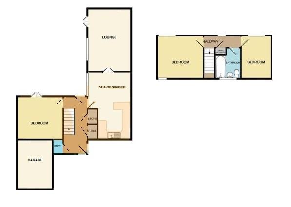 An end terrace property located in Sutton Hill, Telford. The entrance hall leads to a downstairs WC, the downstairs bedroom, the kitchen diner and lounge. The first floor offers two double bedrooms. A bathroom with over bath shower and wash basin then separate WC. The property is fully double glazed and central heated, neutral decor throughout.