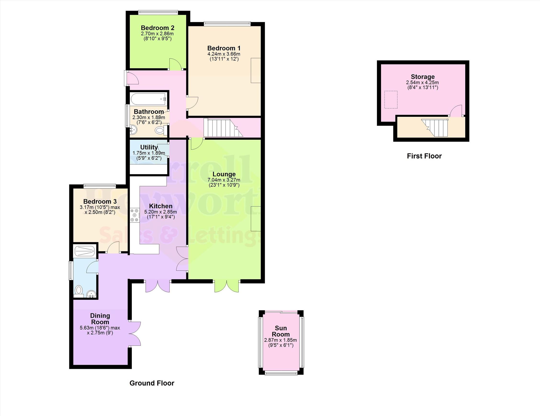 The wet room has a shower area, wash basin and wc. There is a family bathroom with a three piece suite comprising bath, wash basin and wc plus three double bedrooms to the ground floor.